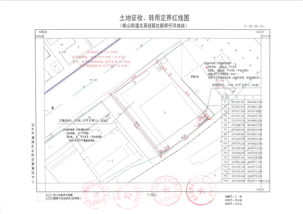 一、征收集体土地面积0.8648公顷(折合12.97亩),征收土地位于峡山街道义英经济联合社新桥仔洋,具体四至范围详见征收、转用定界红线图。